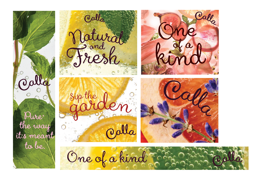Calla it’s a tea infused sparkling water that captures a natural freshness and simplicity through a garden inspired design. It embodies a slower more intentional way of living. Positioning Calla as a refreshing healthier alternative.