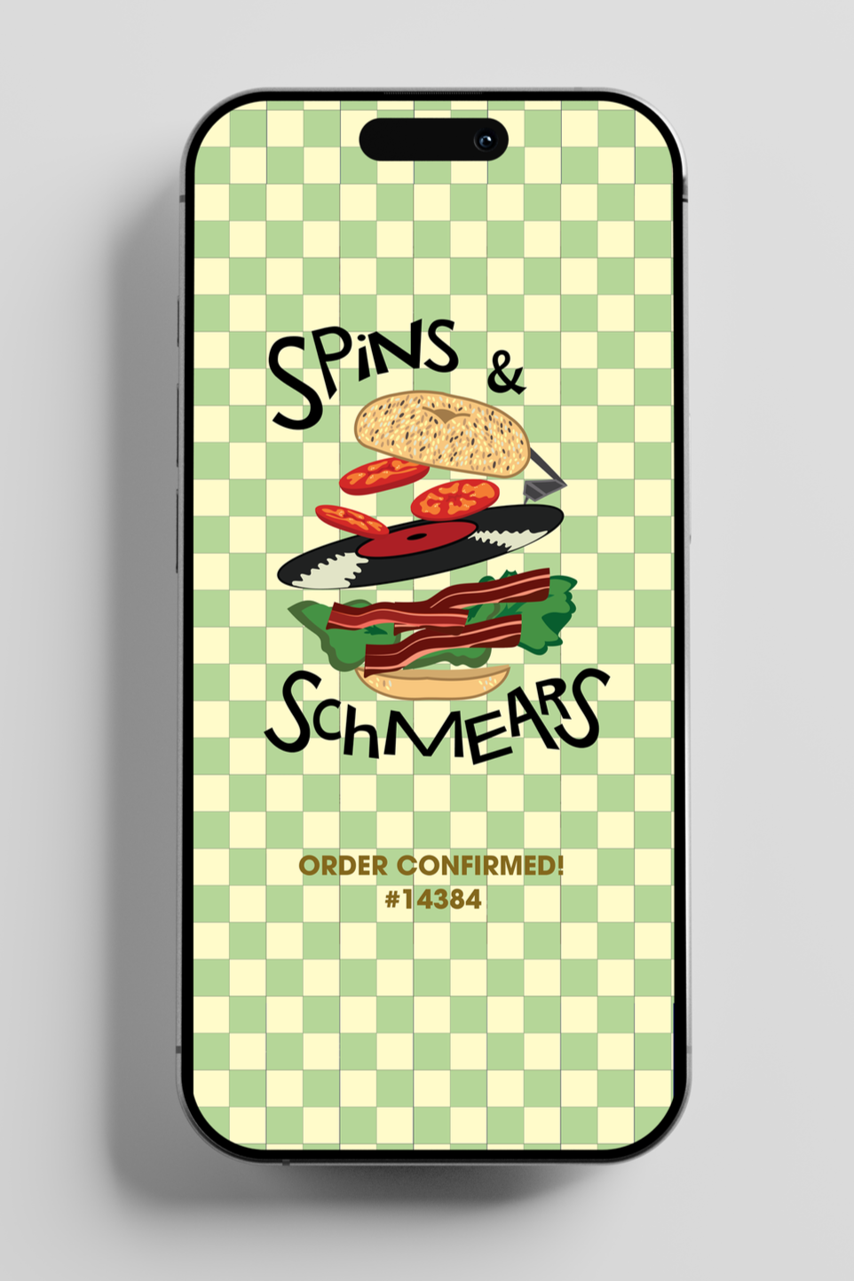 The Spins & Schmears logo introduces the brand’s playful identity by combining bagel culture with vinyl record imagery. The design reflects the shop’s nostalgic personality while visually connecting food and music, two core elements of the brand experience.